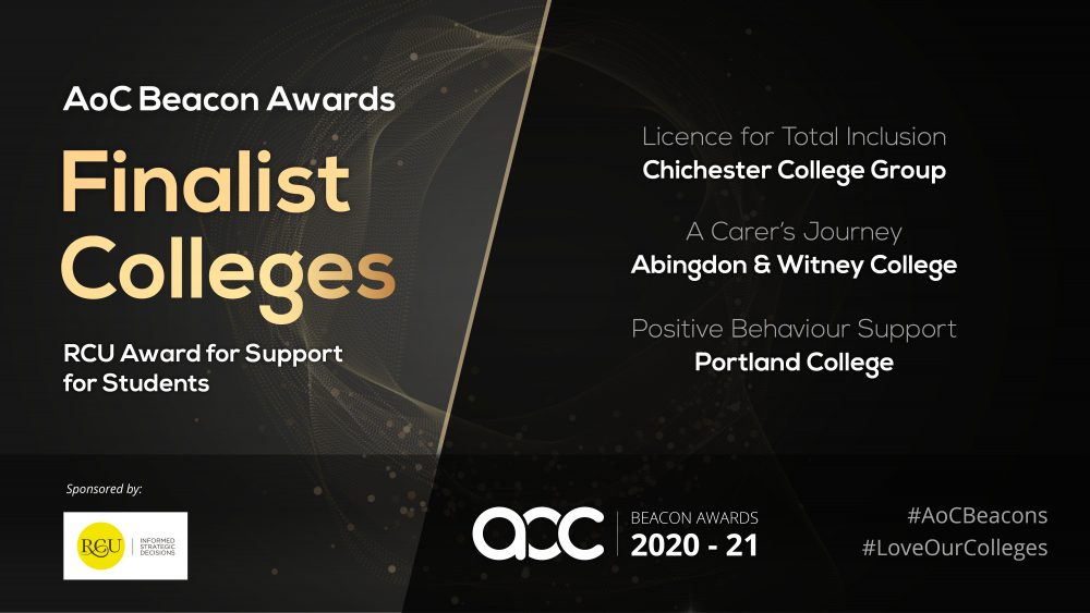 Portland College, Chichester College Group and Abingdon & Witney College have been announced as finalists for the RCU Support for Students Award.